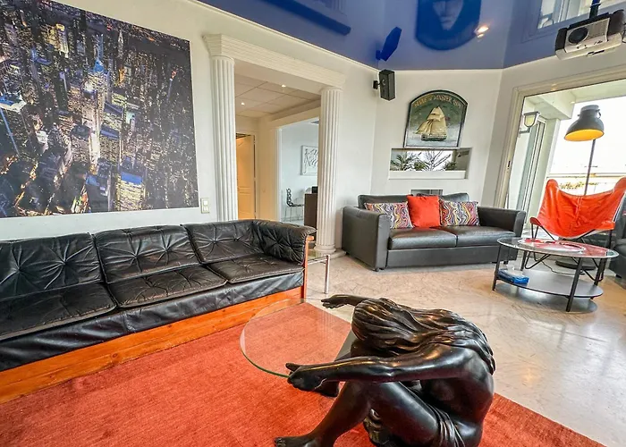 Located only 1.5 km from Provencal Market, spacious 140 m^2 Rooftop, Sea View, Facing The Harbor, Near Center And Beach features a free private car park for those who travel by car. Within 4 km of the 2-bedroom apartment you will find Le Sentier du Littoral.